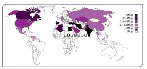 數(shù)據(jù)來源:2016年全球水泥目錄研究 圖1:全球白水泥產(chǎn)能分布圖
