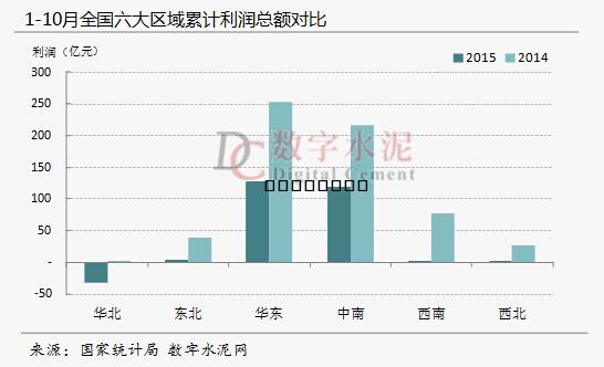 至10月份,全國六大區(qū)域的水泥市場中,華東和中南兩大區(qū)域仍是全國主要利潤奉獻(xiàn)區(qū)域,1-10月累計(jì)利潤總額合計(jì)達(dá)240多億元,但與去年同期相比,兩大區(qū)域的利潤減少近一半左右;西北地區(qū)已實(shí)現(xiàn)扭虧為盈,10月份單月盈利3.5個(gè)億; 西南、東北和西北三大區(qū)域前10個(gè)月累計(jì)利潤總額合計(jì)不足10億元;華北是唯一出現(xiàn)虧損的區(qū)域,累計(jì)虧損總額約達(dá)32億元,拉低了全行業(yè)的利潤水平。