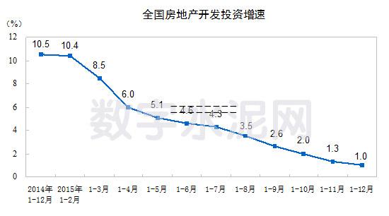 2015年,全國(guó)房地產(chǎn)開(kāi)發(fā)投資95,979億元,比上年名義增長(zhǎng)1.0%(扣除價(jià)格因素實(shí)際增長(zhǎng)2.8%),增速比1-11月份回落0.3個(gè)百分點(diǎn)。其中,住宅投資64,595億元,增長(zhǎng)0.4%,增速回落0.3個(gè)百分點(diǎn)。住宅投資占房地產(chǎn)開(kāi)發(fā)投資的比重為67.3%。