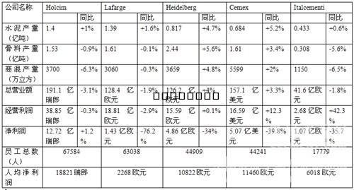 2014年度(2014年4月1日~2015年3月31日)的經(jīng)營(yíng)財(cái)務(wù)報(bào)表是法國(guó)Lafarge集團(tuán)和瑞士Holcim集團(tuán)兩家世界最大最強(qiáng)的水泥集團(tuán)公司各自最后一年的年報(bào),均已于2015年6~7月間分別發(fā)布。筆者將歐洲幾家世界水泥權(quán)威性評(píng)議機(jī)構(gòu)發(fā)布的2014年度世界前5家水泥跨國(guó)公司的業(yè)績(jī)統(tǒng)計(jì)作一簡(jiǎn)介,并結(jié)合我國(guó)水泥企業(yè)的情況進(jìn)行若干分析思考。