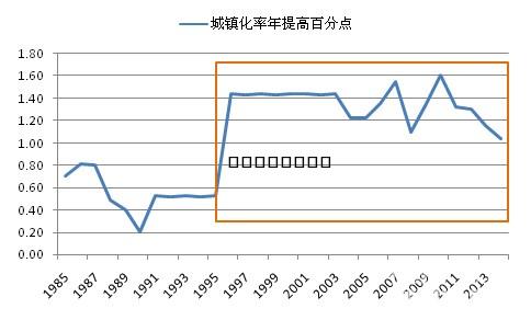 資料來源:世界銀行,中國水泥網,中國水泥研究院 然而,從2011年開始,中國城鎮(zhèn)化率年提高的百分點數逐年降低,2011~2014年分別提高1.32、1.3、1.16和1.04個百分點,2014年是1996年步入城鎮(zhèn)化快速發(fā)展軌道以來城鎮(zhèn)化率年提高百分點數量最低的一年。于此同時,中國經濟步入新常態(tài),由高速增長換擋為中高速,城鎮(zhèn)化放緩趨勢越來越明顯。 圖2:2011~2014年城鎮(zhèn)化進程逐年放緩