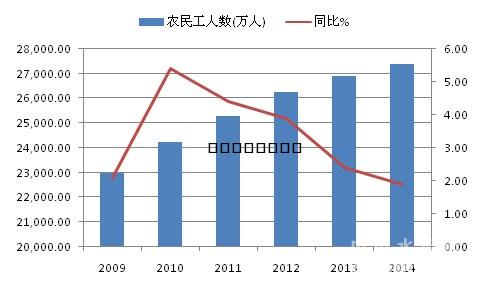 資料來源:世界銀行,中國水泥網,中國水泥研究院 去年3月份,國務院印發(fā)《國家新型城鎮(zhèn)化規(guī)劃(2014-2020年)》,其中提出到2020年城鎮(zhèn)化率達到60%左右的目標。因而,2015~2020年城鎮(zhèn)化率年均應至少提高0.87個百分點,才能確保達到《規(guī)劃》的目標。筆者認為,要完成這一目標存在著兩個主要變數。 城鎮(zhèn)化變數一:政府融資困難 中國的城鎮(zhèn)化對資金有著龐大的需求,財政部此前預計,2015~2020年至少需要投資42萬億元才能實現60%的城鎮(zhèn)化目標。龐大的資金從何而來?中國社會科學院《中國國家資產負債表2015》的最新數據顯示,2014年地方政府總負債已經達到30.28萬億,其中有10萬億是地方政府融資平臺債務,比重達33%。地方融資平臺主要以政府所擁有的土地作質押進行融資,是之前政府的主要融資方式,然而這種融資方式長期看難以持續(xù)。去年,國務院印發(fā)《國務院關于加強地方政府性債務管理的意見》,明確規(guī)定融資平臺不得新增政府債務。財政部表示,將通過加大地方政府債券、推廣政府與社會資本合作的模式(PPP)保障城鎮(zhèn)化建設資金。然而,筆者認為,短期內,地方政府債券尚不能成為政府的主要融資渠道。根據2015年預算報告,2015年地方政府可發(fā)行債券6000億,目前仍處試點階段。而PPP融資方面,2013年以來在政府的政策支持下進入推廣實施階段,然而發(fā)展仍不成熟,由于投資時間長,規(guī)模大,不確定性較多,社會資本存在諸多擔憂。 城鎮(zhèn)化變數二:進城人數減少 從向城鎮(zhèn)轉移的人口類型看,未來城鎮(zhèn)化率的提高將主要依賴農民工及農村新畢業(yè)的中學生。2014年,中國農民工總量達到2.74億人,同比增長1.9%,增速連續(xù)四年保持下行。隨著中國勞動力總量的減少,農民工回流及農民外出數量減少等使得農民工數量增長動力將逐漸枯竭。2014年,中等教育畢業(yè)生數有2892.89萬,已連續(xù)七年出現下降,2014年人數大幅下滑6.34%,其中普通高中及初中畢業(yè)生有2213.13萬,同比下滑6.24%,來自農村的有310萬左右,較2011年減少近150萬,下滑幅度更快。農民工數量增長衰竭及農村新畢業(yè)中學生大幅下滑將給2020年城鎮(zhèn)化率實現60%的目標的實現增加不確定性。不僅如此,城鎮(zhèn)房地產的潛在需求量也將因人口紅利的減少而萎縮,這對水泥業(yè)同樣不利。 圖3:農民工總量增速連續(xù)四年下滑