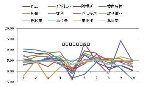 資料來源:世界銀行,中國水泥網(wǎng),中國水泥研究院 2014年,南美各國經(jīng)濟增速均呈現(xiàn)不同程度的放緩,整體經(jīng)濟僅增長0.7%,較2013年下滑2.1個百分點,委內(nèi)瑞拉受油價下跌及國內(nèi)抗議活動影響,經(jīng)濟陷入衰退,萎縮4%,巴西、阿根廷、秘魯、智利等南美大國經(jīng)濟增速放緩2個百分點以上。拉美經(jīng)委會預(yù)測,2015年南美洲經(jīng)濟將出現(xiàn)零增長,拉美第一大經(jīng)濟體巴西全年經(jīng)濟預(yù)計也將出現(xiàn)萎縮。 圖2:2014年南美各國經(jīng)濟增長放緩,委內(nèi)瑞拉陷入經(jīng)濟衰退